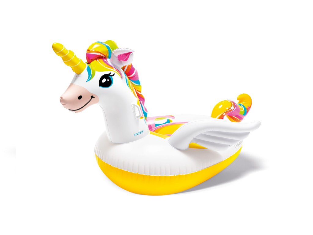 Nafukovací barevný jednorožec je vhodný jak do bazénu, tak na jezero nebo do moře. Tvar draka je přizpůsobený tak, aby umožňoval pohodlné sezení pro jedno dítě. Jednorožec je opatřen na bocích držátky. Po stranách jsou umístěny 2 bezpečnostní držadla. Má 2 vzduchové komory. Materiál: vinyl (0,30 mm) Rozměry: 201x140x97 cm Nosnost do 40 kg Doporučený věk: od 3 letDoplňkové parametry