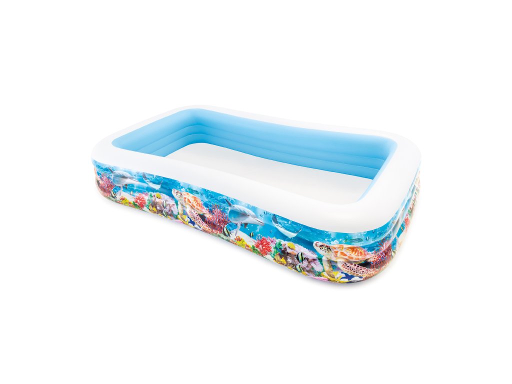 Užijte si spolu s dětmi vodní radovánky přímo na vaší zahradě! Nafukovací bazén s motivem podmořského světa poskytuje dostatek místa pro celou rodinu. 3 vzduchové komory vyrobeno z kvalitního vinylu o tloušťce 0,33 mm vypouštěcí ventil součástí je opravný set Objem vody: 1020 l Rozměry: 305 x 183 x 56 cmDoplňkové parametry
