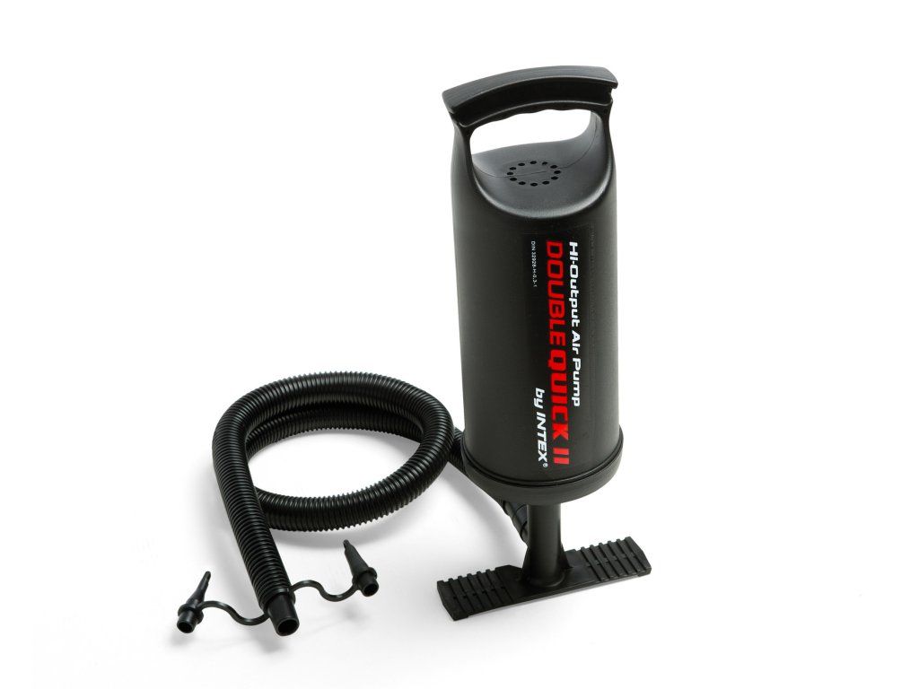 Pumpa ruční dvoučinná DOUBLE QUICK Má 3 spojovací trysky, které pasují na malé, střední i velké nafukovací ventily. Umožňují též snadné vypouštění vzduchu opačným koncem nástavce. Universální připojení na ventil umožňuje nafukovat matrace, čluny,Doplňkové parametry