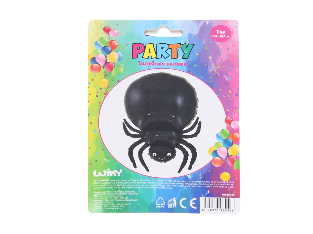 Balónek nafukovací ve tvaru pavouka. Velikost v nenafouknutém stavu: 53x80 cm.Doplňkové parametry