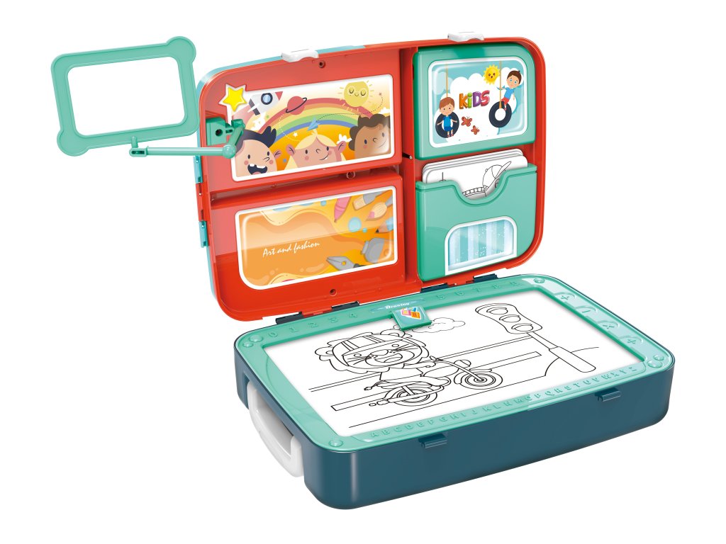 Batoh kreativní. Velikost 28cm. Otevírací batoh, obsahuje otevíratelné přihrádky, kreslicí tabulku na mazací fixy a přichycení magnetek, druhou strana tabulky lze popsat křídou, magnetická čísla a písmenka, křídy, hubku na mazání, mazací fixy, popruhy na záda, nálepky na ozdobení batohu.Doplňkové parametry