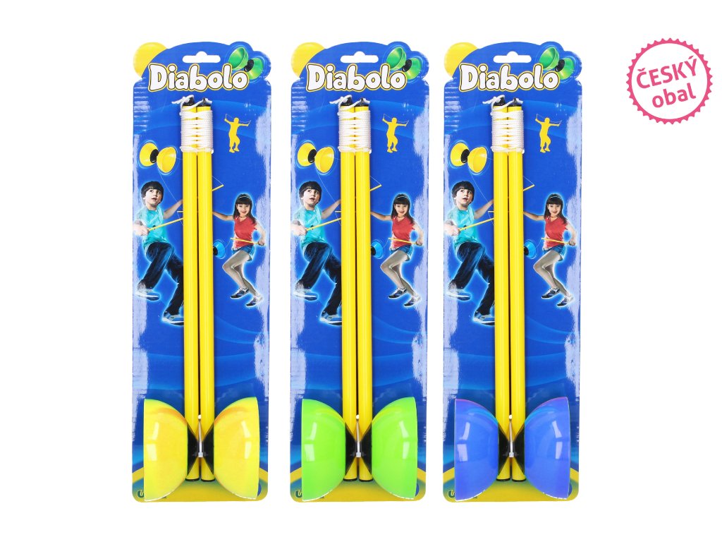 Diabolo je žonglovací pomůcka skládající se z cívky, která je točena a vyhazována pomocí provázku uvázaného mezi dvě hůlky, držené žonglérem v rukách. Velikost 10x9 cm. Délka hůlek 35 cm.Doplňkové parametry