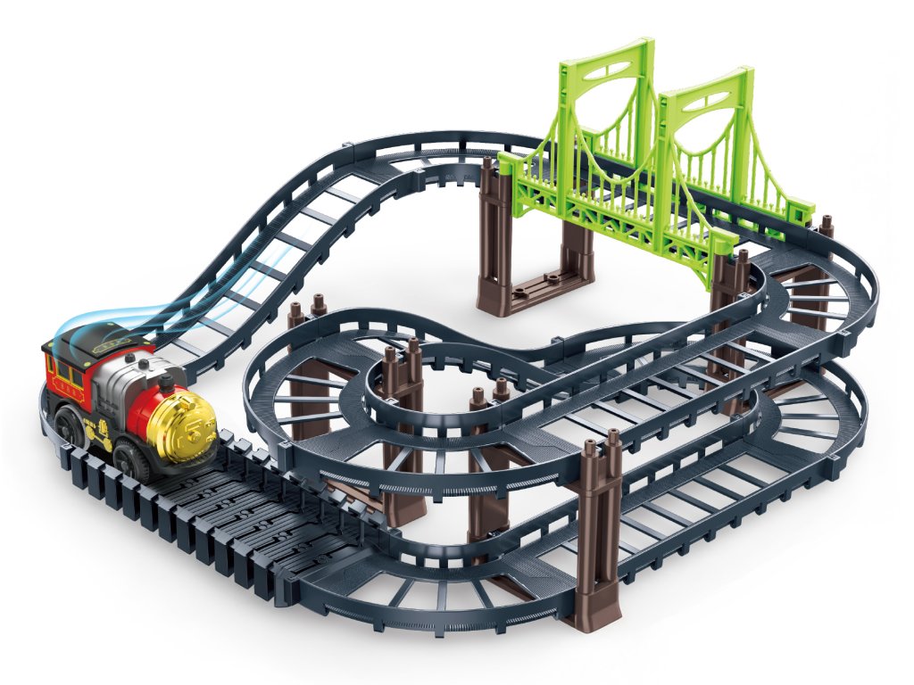 Dráha mašinka. Rozměry dráhy 31x32x14 cm. Aktivace mašinky ON/OFF přepínačem na spodní straně. Pokyny k sestavení na obalu. Baterie 1xAA, nejsou součástí. Sada obsahuje 38 dílů.Doplňkové parametry