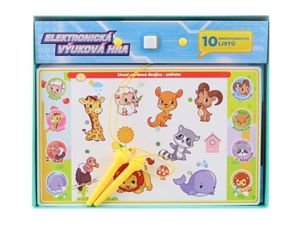 Elektronická výuková hra. Hra nabízí zábavné učení formou hry. Hledáte způsob, jak vaše děti naučit základy počítání, angličtiny, tvarů nebo profesí zábavnou a poutavou formou? Chcete, aby se vzdělávaly s radostí a samy si osvojovaly nové dovednosti? Představujeme Elektronickou výukovou hru CZ, která kombinuje učení s hrou a motivuje děti k objevování světa vědomostí už od raného věku! Balení obsahuje 10 oboustranných listů s úkoly. Napájení na 2xAAA baterie, které nejsou součástí balení. FunkceDoplňkové parametry