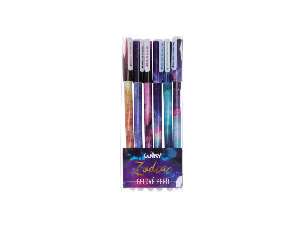Gelové pero sada 6 ks v jednom boxu - Zodiac. 6 různých barev: oranžová, černá, červená, světle modrá, zelená a tmavě modrá.Doplňkové parametry