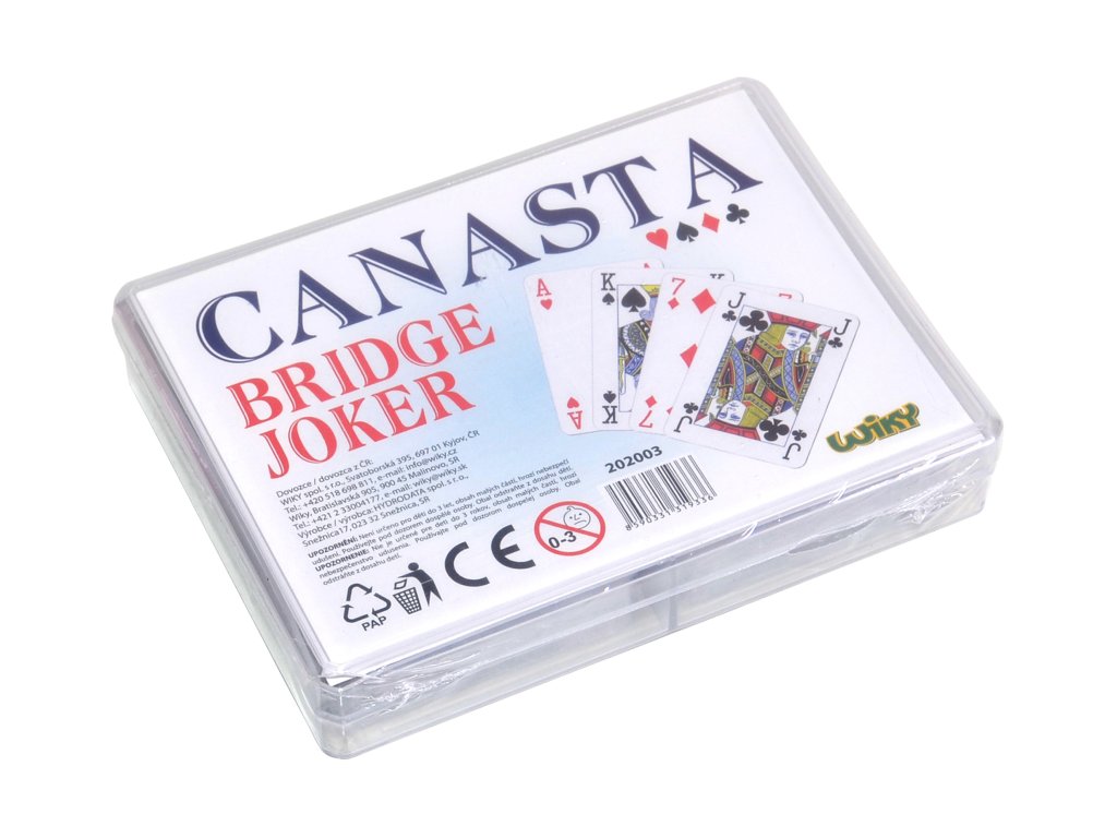 Karetní hra Canasta je skvělá hra pro všechny nadšené hráče. Užijete si s touto hrou opravdu spoustu legrace. Povrch karet - matný, křídový papírDoplňkové parametry
