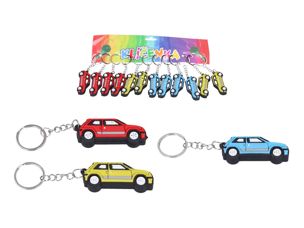 Klíčenka auto. 3 barevné provedení: červené, žluté a modré. 12 ks na kartě.Doplňkové parametry