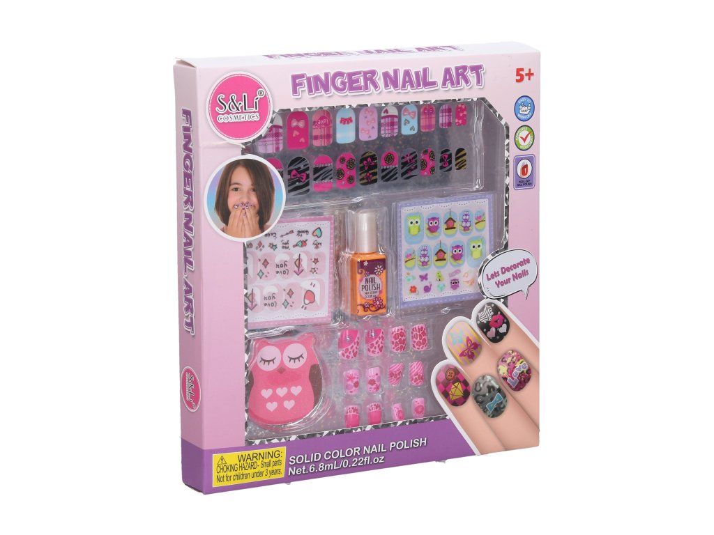 Kosmetický set péče o nehty. Obsahuje nalepovací nehty, lak na nehty, pilník, nálepky na nehty, lak na nehty.Doplňkové parametry