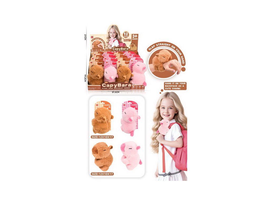 Náramek plyšový kapybara. Rozměry 12x10x17 cm. 12 ks display box. 2 varianty - hnědá, růžová.Doplňkové parametry