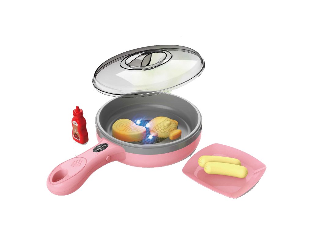 Pánev elektronická. Velikost 27,5x16x7 cm. Během smažení potraviny mění barvu. Obsahuje pánev, pokličku, talířek, kečup, 4ks potravin. Světelné a zvukové efekty. 2xAAA baterie nejsou součástí.Doplňkové parametry
