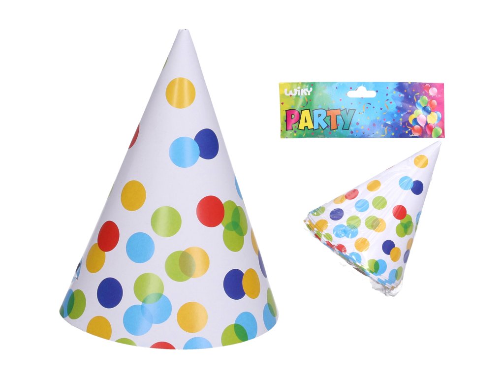 Párty kloboučky TEČKY 15 cm. Balení obsahuje 6 ks kloboučků.Doplňkové parametry