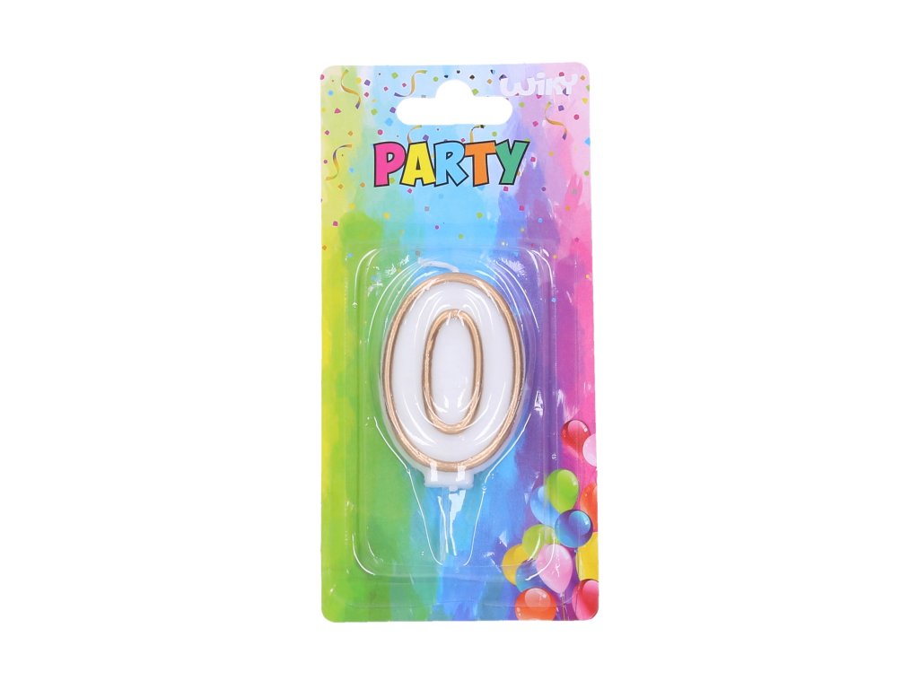 Bílá svíčka se zlatým lemem ve tvaru čísla se stojánkem z vosku pro pohodlné a pevné umístění na dort. Velikost: 5,6 cmDoplňkové parametry