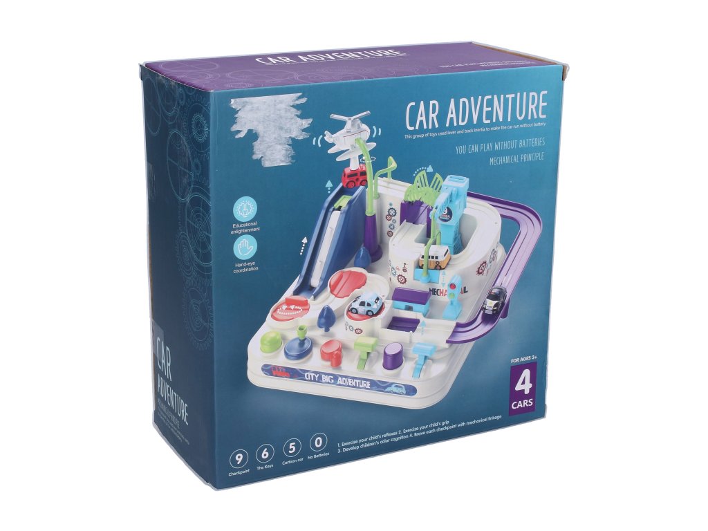 Překážková dráha bude opravdovým zážitkem pro malé dobrodružné průzkumníky. Vypadá to jako snadný úkol? To je jen zdání. Podívejte se na to a uvidíte sami. Při cestování po trati na vás čeká řada překážek. Vyzvěte každého a staňte se šampiónem. Můžete si být jisti, že zábava neskončí, je to hračka, která přiláká nejen děti na dlouhé hodiny. Hra s dráhou není jen fantastické dobrodružství, ale také formou podpory správného vývoje dítěte Rozměry 24x24x10 cm. Obsah balení: 6 ovládací prvky (kolečka, páčky). 4 auta. Doporučený věk: 3+Doplňkové parametry