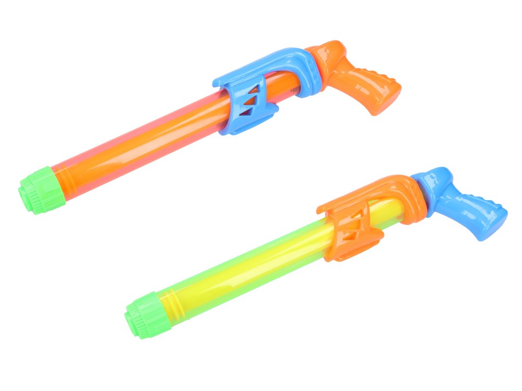 Puška vodní. Délka 32 cm. Display box - 24 ks. 2 varianty - žlutá, oranžová.Doplňkové parametry