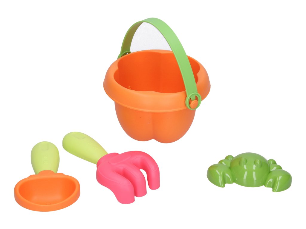 Sada na písek 5 ks. Rozměry 15x14x9,5 cm. Obsahuje kyblík, lopatku, hrabičky, 2 formičky. Více variant formiček.Doplňkové parametry