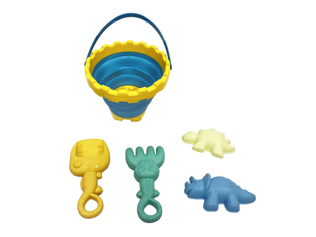 Sada na písek dino 5 ks. Obsahuje kyblík, lopatku, hrabičky, 2 formičky.Doplňkové parametry