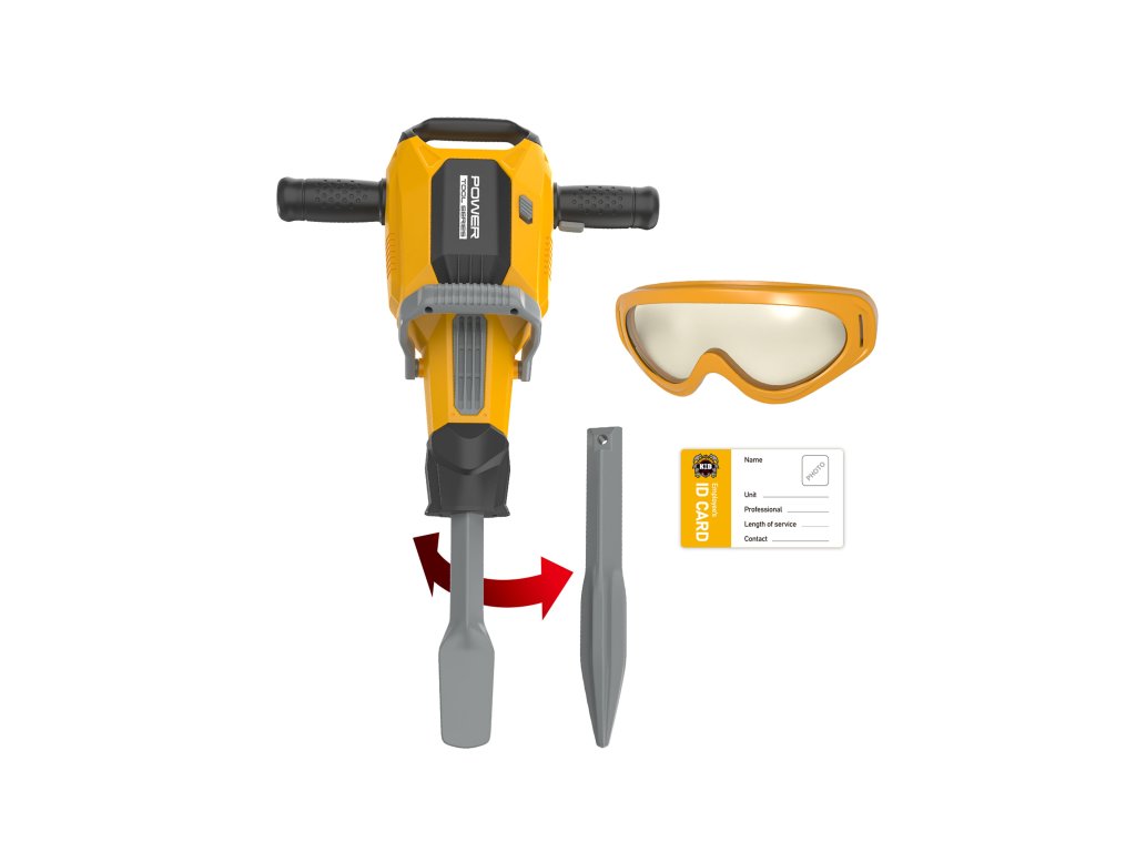 Sbíječka bourací kladivo set. Rozměry 26,5x8,5x41,6 cm. Součástí sbíječka, 2 vrtáky, ochranné brýle, vizitka. Světelné efekty. 3xAA baterie nejsou součástí. Přepínač ON/OFF na sbíječce, spoušť na rukojeti.Doplňkové parametry