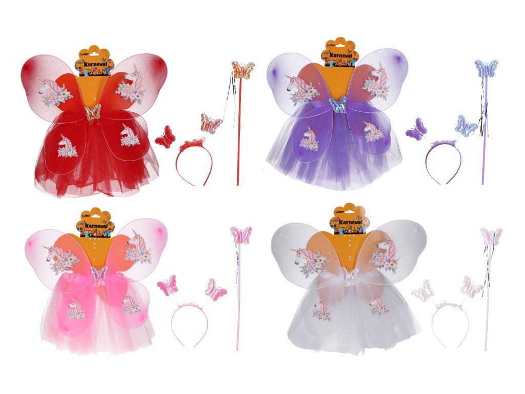 Karnevalový set - víla Obsahuje: sukně, křídla, hůlka, čelenka Délka sukně: 30 cmDoplňkové parametry