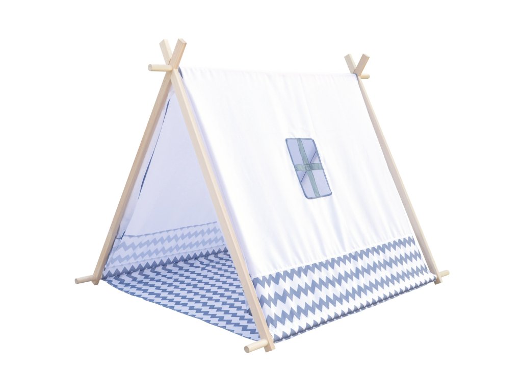 Dětský stan na hraní. Obsahuje vzdušné okénko, otevřený závěs dveří a podlahu. Plachta domečku je vyrobena ze 100% polyesteru a konstrukce ze dřeva. Stan přináší do života dětí spoustu zábavy, zkoumání, vytváření skrýší ve vlastní ,,jeskyni‘‘.Doplňkové parametry