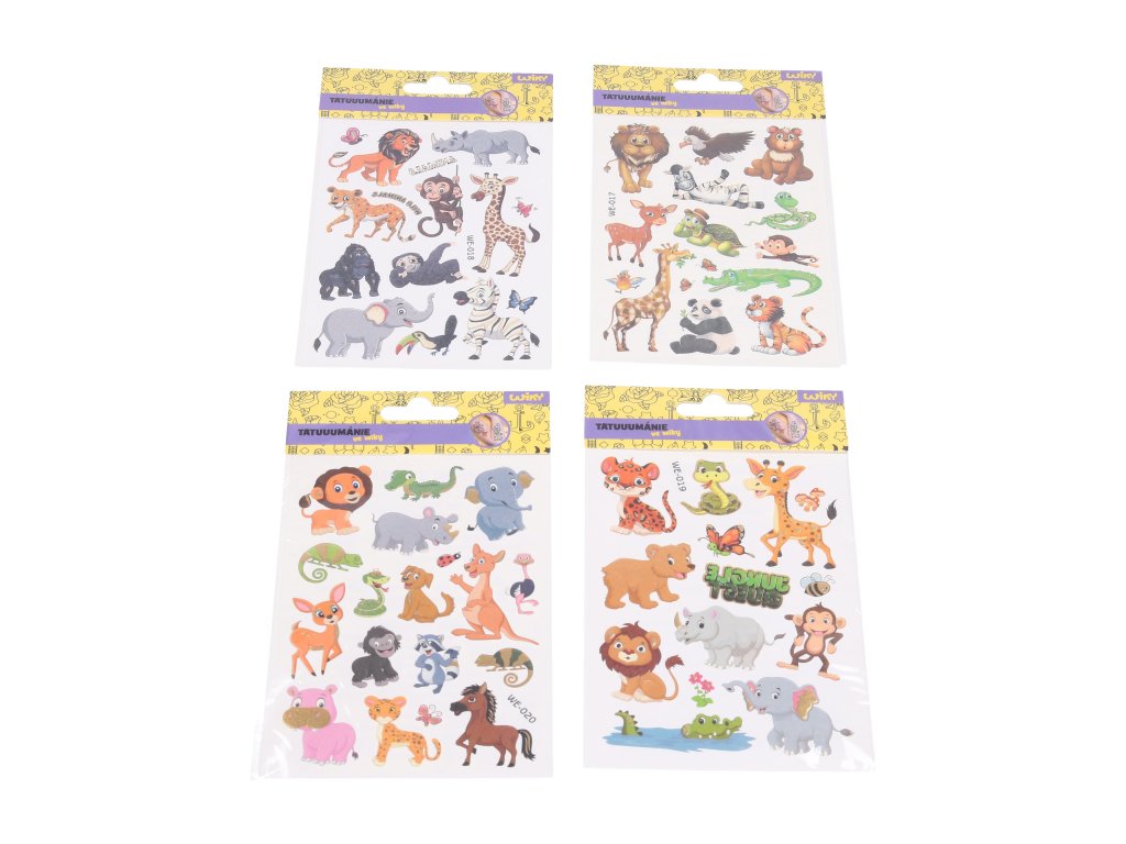 Tetovací obtisky o velikosti 10,5x15 cm. Zoo - 4 varianty.Doplňkové parametry
