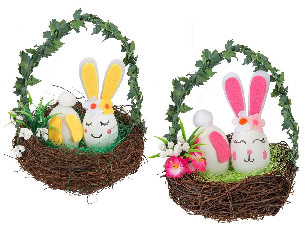 Velikonoce Zajíček v košíku. 2 varianty - růžová, žlutá.Doplňkové parametry