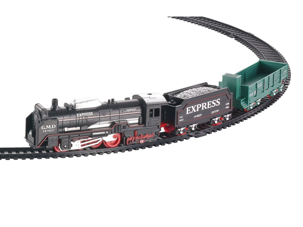 Vlak set. Rozměry železnice 68x68 cm, velikost mašinky 13 cm, vagónů 9-11 cm. Součástí mašinka, 2 vagóny. Světelné efekty. 2xAA baterie nejsou součástí. Přepínač ON/OFF na pravé straně mašinky.Doplňkové parametry