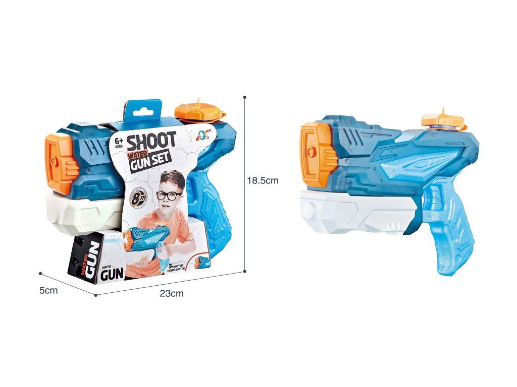 Vodní pistole. Rozměry 23x5x17 cm. Dostřel 8 m. Objem vodní nádržky 300 ml.Doplňkové parametry