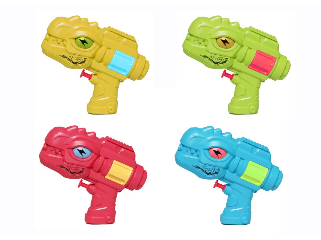 Vodní pistole dinosaurus. Velikost 14 cm. 4 varianty - modrá, zelená, žlutá, červená.Doplňkové parametry