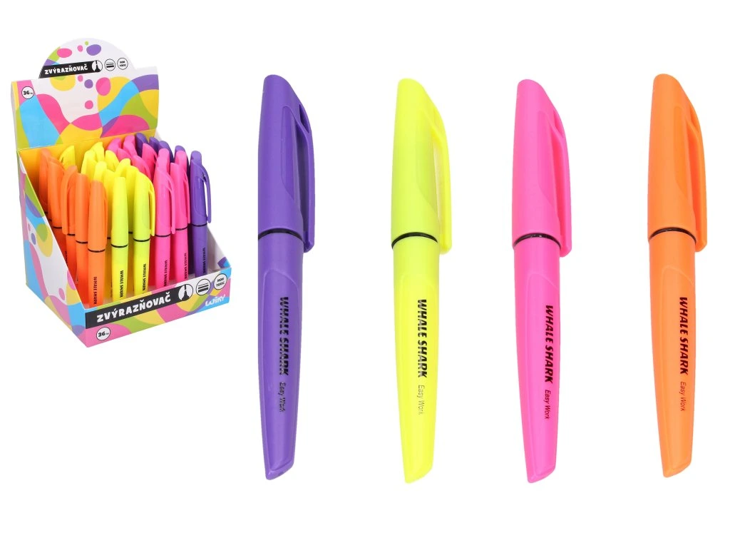 Zvýrazňovač fluo. 4 barevné varianty: oranžový, žlutý, růžový a fialový. 36 ks v display boxu.Doplňkové parametry